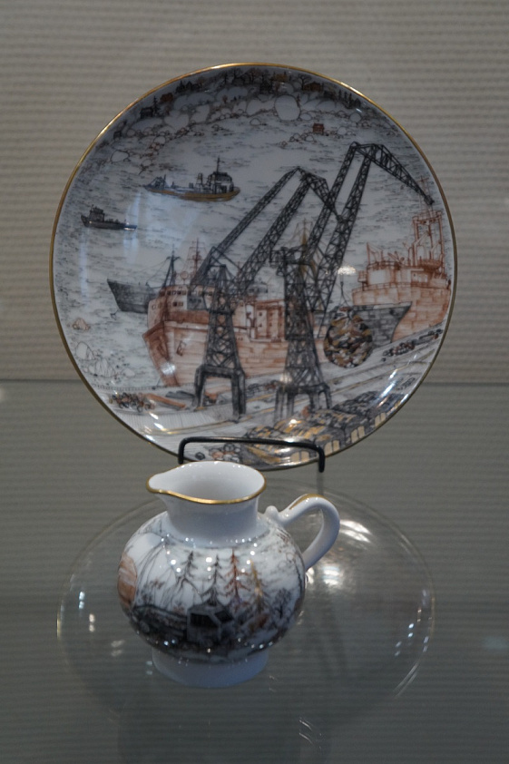 Так, в одной из витрин можно увидеть небольшую скульптурку «Мальчик с кувшином», созданную в 1970-х годах художником Александром Письменных. Выполнена она в необычной технике «бисквит», когда не покрытый глазурью фарфор становится похожим на мрамор. Интерес к этой технике возник ещё в XVIII веке, во времена господства в искусстве идей классицизма.