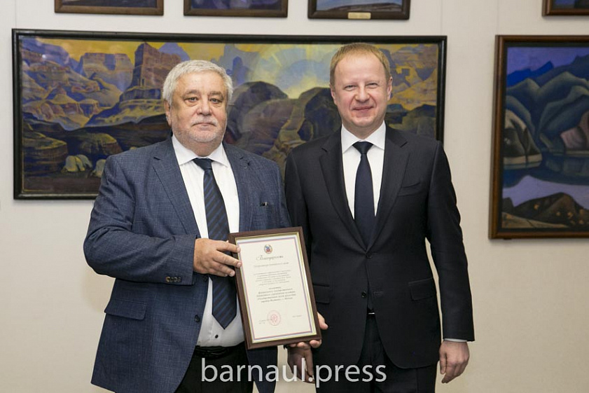 За многолетнее сотрудничество Виктор Томенко вручил Владимиру Росову краевую награду — медаль «За заслуги перед обществом».