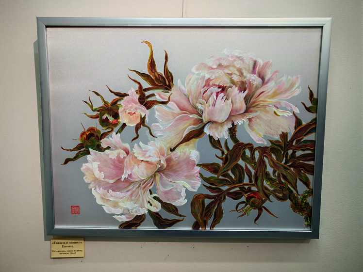 — Могу сказать, что Елена любит линии, а линии в свою очередь любят её, — с улыбкой сообщает Оксана Сидорова, главный научный сотрудник научно-исследовательского отдела ГХМАК. — Также на протяжении всего творческого пути она пишет и рисует цветы, но в этот раз они звучат по-новому. Её роскошные пионы раскрылись на серебристом, жемчужном фоне, а этот цвет напрямую связывают с мудростью и опытом. Бессменным остаётся то, что искусство Елены заставляет остановиться и задуматься каждого, кто с ним соприкасается.