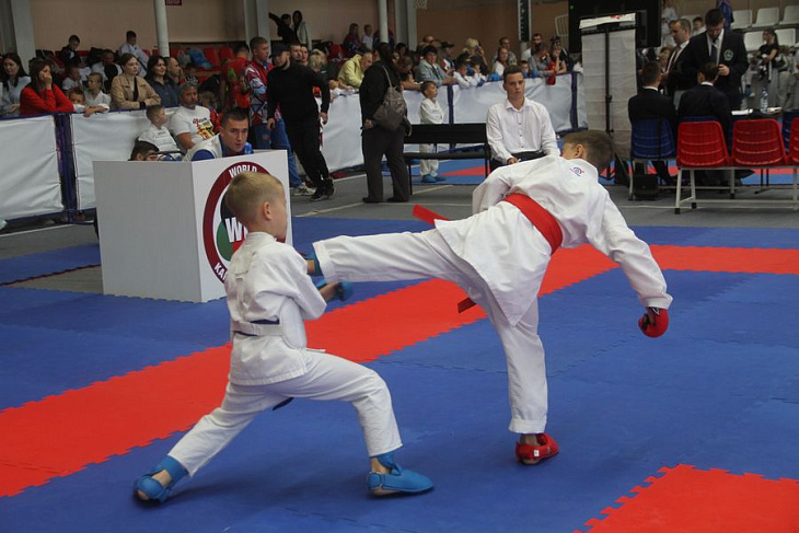 В барнаульском спорткомплексе «Победа» прошло первенство Сибири по карате WKF. Самым младшим участникам было 10 лет, а старшим — в два раза больше. На кону стояли путёвки на первенство России.