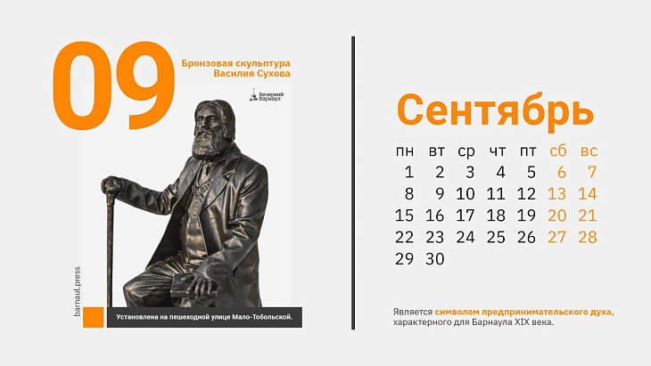 «Вечерний Барнаул» продолжает делиться дизайнерскими изображениями календарей на каждый месяц года с достопримечательностями нашего города и интересными фактами о них.