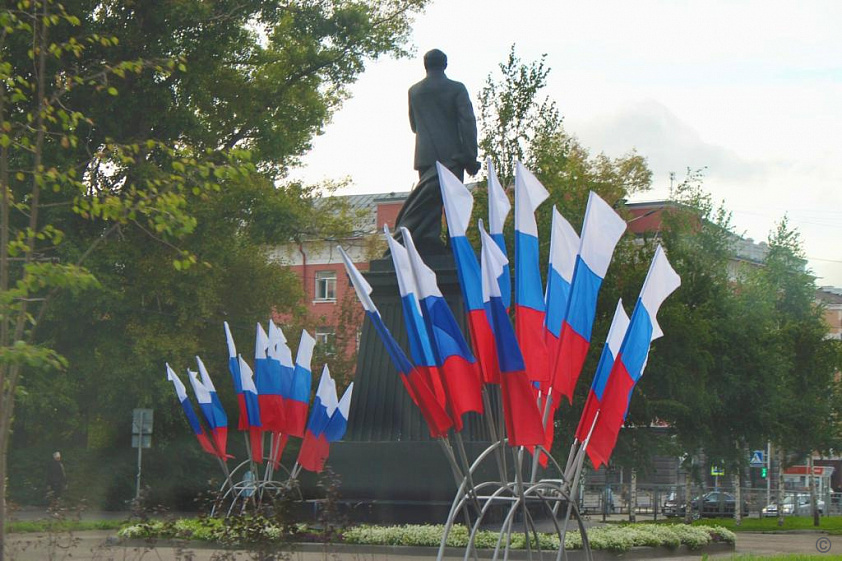 Проспект Ленина, площадь Баварина, сквер микрорайона №17 украсили флаговыми кострами. В Центральном районе города их разместили также на пересечении проспекта Ленина и улицы Льва Толстого.