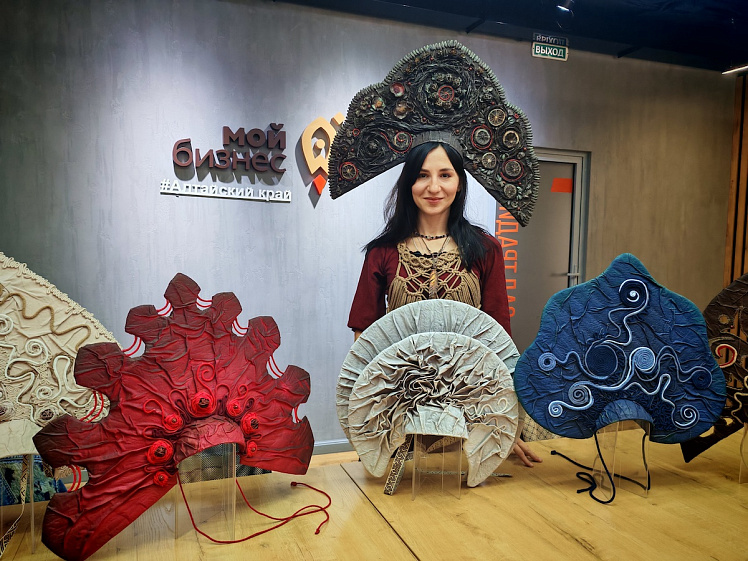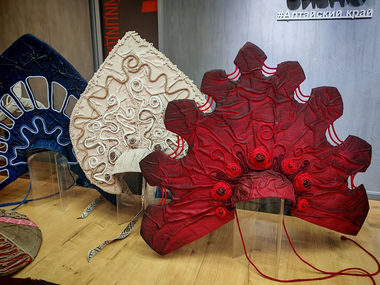 Уже через месяц она продемонстрировала «Красные нити» на региональном этапе конкурса дизайнеров «Русский силуэт», а в этом году выполнила данное себе обещание — стала участницей второго фестиваля малых производств «А, это алтайское!?». Модели в ее кокошниках вышли тогда на подиум, а изделия стали частью большой выставки «Культурный код».