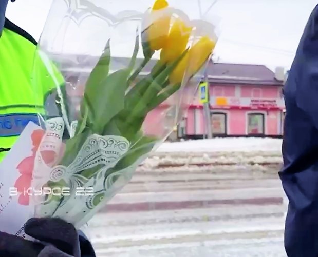 В Международный женский день сотрудники правоохранительных органов вручили автолюбительницам цветы и открытки.