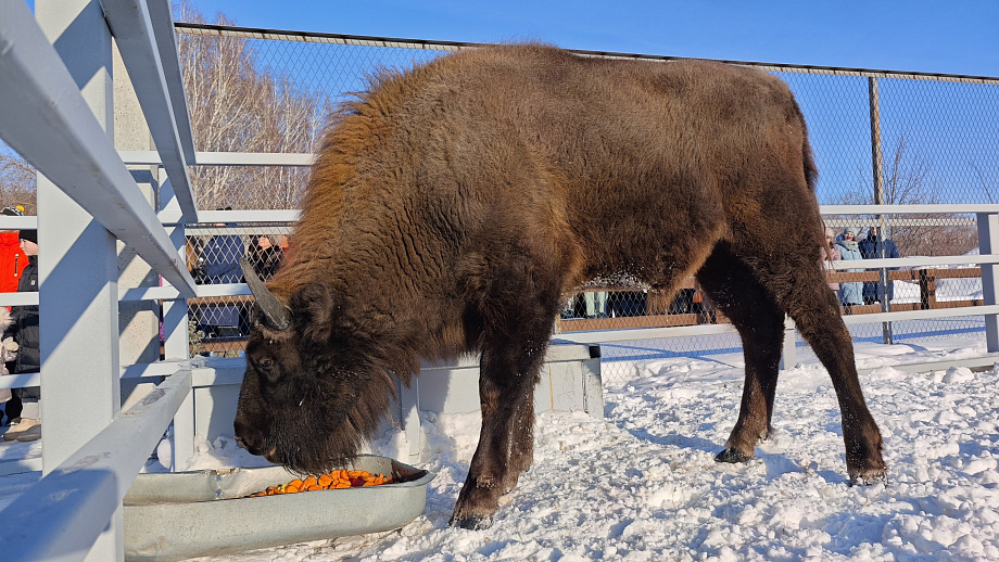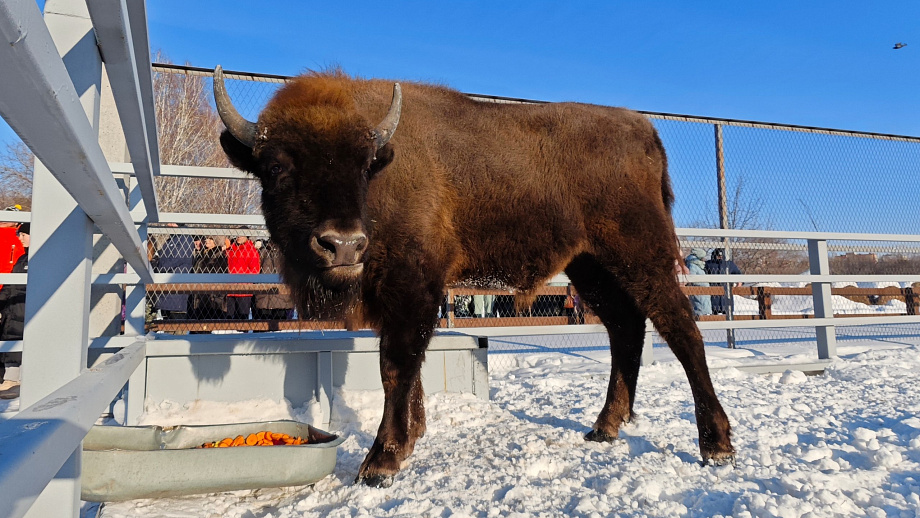 Пришедшие в регион холода заставили многих теплолюбивых животных зоосада попрятаться в своих тёплых вольерах. Но есть особи, которым морозы в радость. Среди них зубр Мурашик.