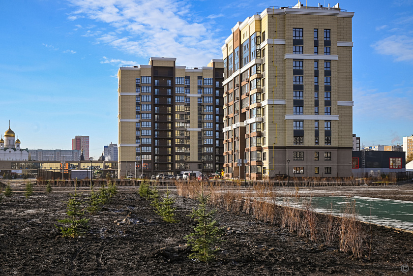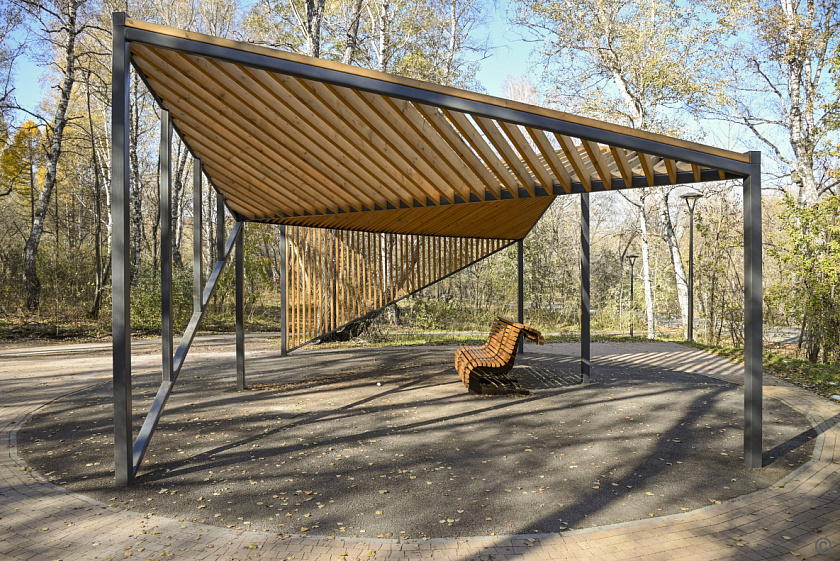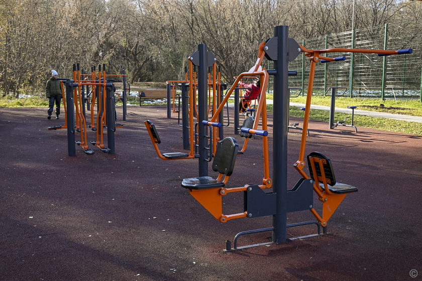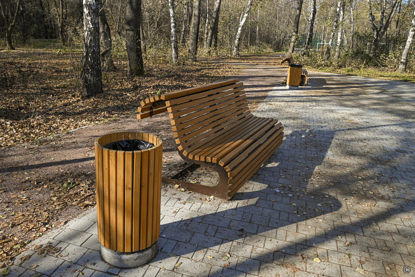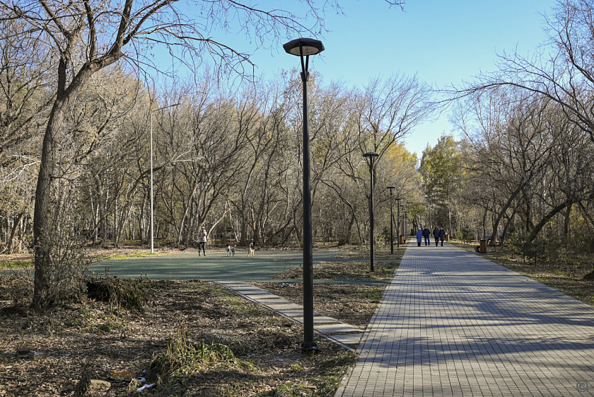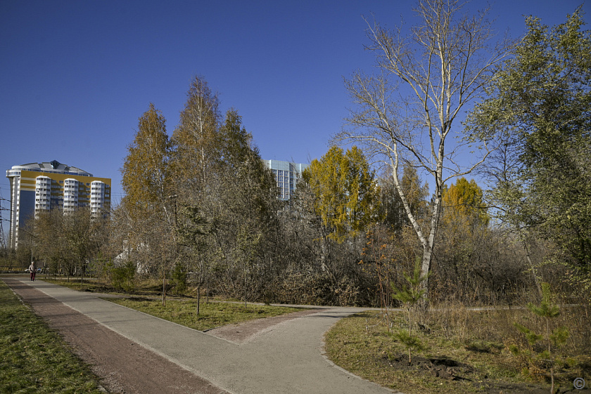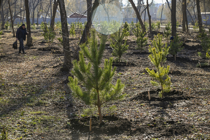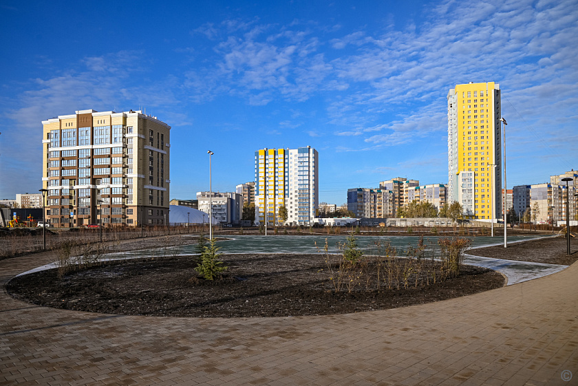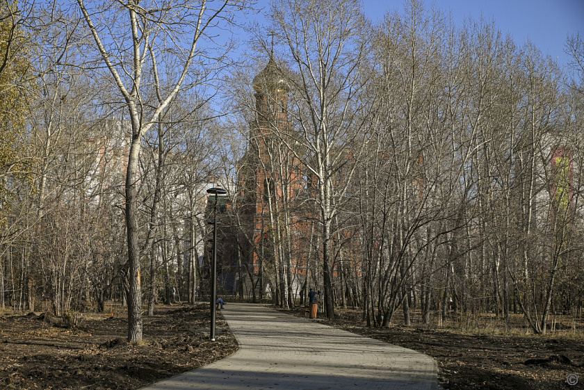 Ещё в этом общественном пространстве появился цветник, сейчас там сеют газон. На сегодняшний день специалисты активно озеленяют территорию: они уже высадили больше 750 деревьев, всего же предстоит посадить 2,5 тысячи саженцев.