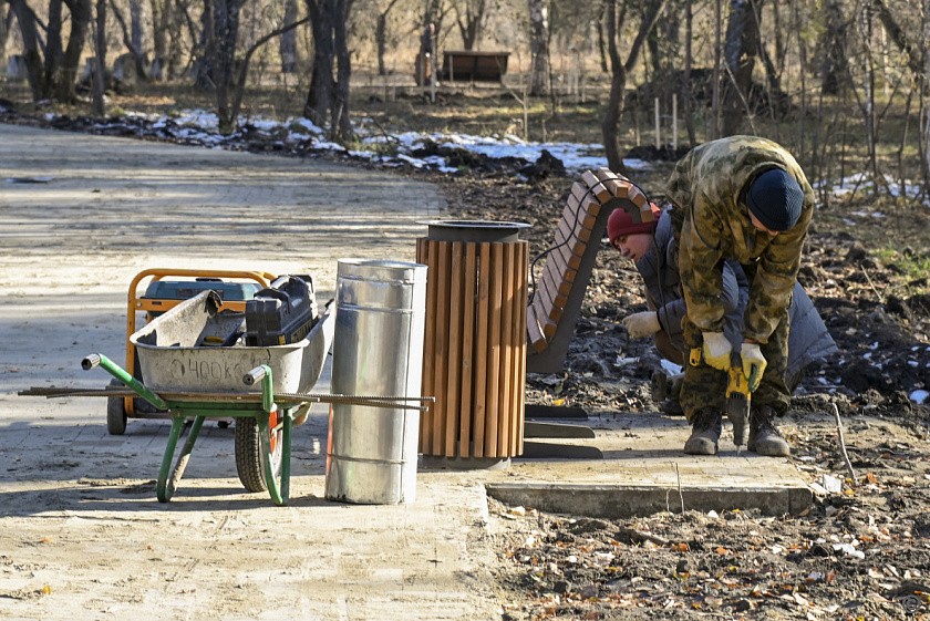 Так, в парке имени Ленина сформировали пешеходно-тропиночную сеть, уложили плитку и асфальтовое покрытие на дорожках, а также террасные доски на будущих зонах отдыха. Кроме того, подрядчик обустроил специальное резиновое покрытие для будущих спортивных и игровых площадок, теперь идёт монтаж освещения и видеонаблюдения.