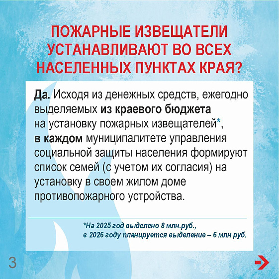 По данным телеграм-канала Минсоцзащиты Алтайского края, сейчас пожарные извещатели в своих домах имеют порядка 17 тысяч семей, ещё шесть тысяч владеют сигнализаторами угарного газа. Общая сумма оборудования составляет 35,7 миллиона рублей.