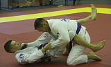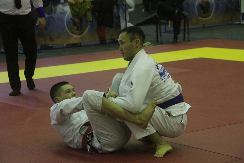 Из Благовещенска не зря приехал Антон Ложкин. Только что в полуфинале дисциплины «борьба в кимоно» среди взрослых он удушающим приемом победил оппонента.