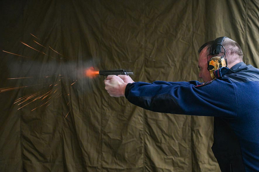 Все участники, как уже говорилось, приезжают со своим оружием — табельным либо персональным. Курсантам в этом плане сложнее, редко у кого уже во времена учёбы есть свой пистолет. Но следят за ними все одинаково: и перед упражнением, и после него чистят, смазывают. Каждый подгоняет под себя и рукоять, и спусковой крючок, но при этом всё тоже должно укладываться в регламентные рамки — спуск, например, должен выдерживать гирю определённого веса. Если не выдерживает, значит, спусковой крючок нажимается слишком легко, а это несанкционированный бонус для спортсмена, нельзя.
