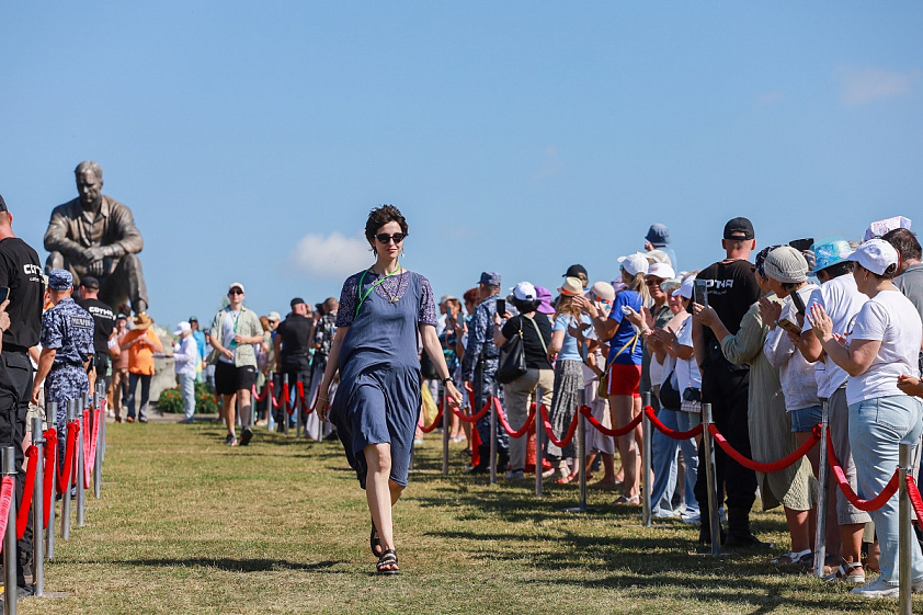 По традиции все гости и участники фестиваля прошли по красной дорожке, ведущей к главной сцене, и заняли свои места на трибуне.