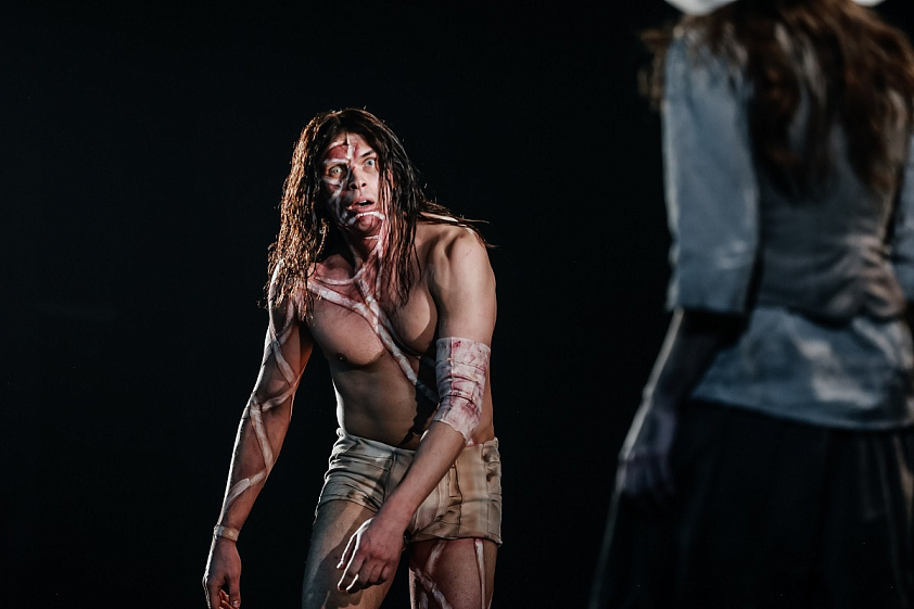 Стоило раскрыться занавесу, как сразу стало понятно: мир переживает последствия катастрофы. Вся сцена покрыта вулканическим пеплом, а неотъемлемой частью декораций являются потрепанные ткани, покосившиеся стул и кровать. Да и герои, населяющие виллу на Женевском озере, то и дело рассуждают о смерти, апокалипсисе, упоминают «Декамерона», написанного под впечатлением от эпидемии чумы.