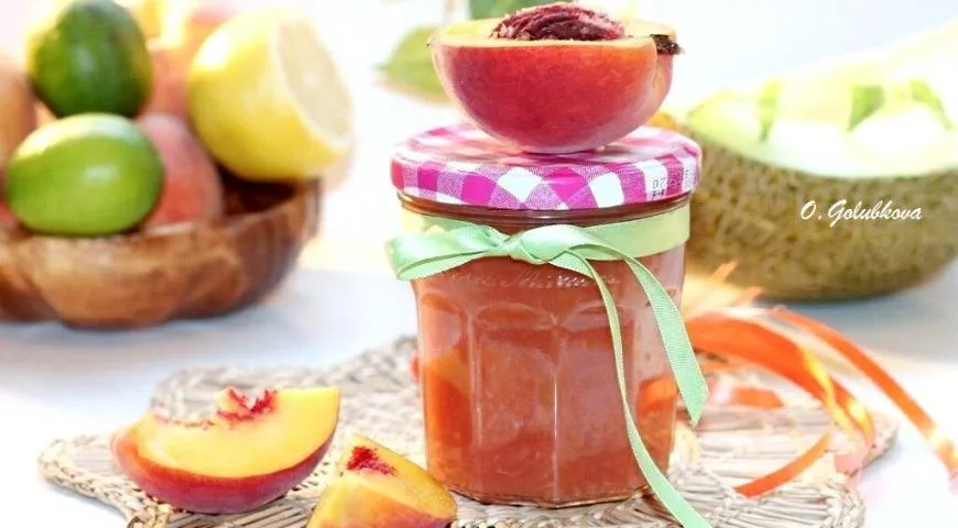 Как приготовить: персики очистите от кожуры и нарежьте дольками. Дыню нарежьте кусочками. Выложите фрукты в большую миску и измельчите погружным блендером. Смешайте в кастрюле вино, цедру лимона и сахар, доведите до кипения. Добавьте в получившееся фруктовое пюре имбирь, соус сока лайма и влейте коньяк или ром. На слабом огне доведите до кипения, периодически помешивая, и варите 2-3 минуты. Соус можно остудить и подавать к блинам, рисовой и манной каше или к мороженому. Если соус нужно сохранить до зимы, разложите по подготовленным банкам и закройте крышками. Храните в холодильнике, советует автор рецепта Ольга Голубкова.