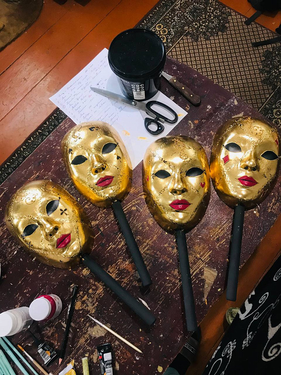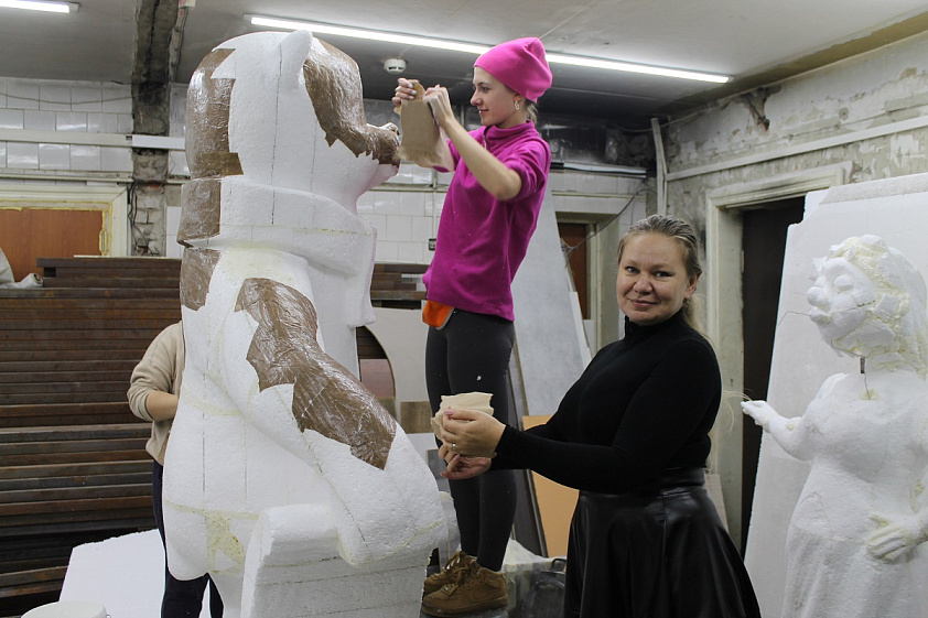 — Я долго искала свой путь, не знала где найти себе применение, — делится она. — А когда оказалась в театре, то поняла: это то, что нужно. Ведь кто такой художник-бутафор? Это тот, кто сочетает в себе всё: он и скульптор, и художник, и пошивщик, и визажист. Помню свой первый спектакль — новогоднюю сказку «Приключения Чиполлино», где я впервые познакомилась с пенопластом, из которого мы вырезали яблоки, помидоры, различную бутафорию. Большую роль в моем формировании как художника-скульптора сыграла заведующая бутафорским цехом, человек-легенда Любовь Ткаченко. Она научила меня практически всему, что я сейчас умею. Делать маски, резать фигуры из пенопласта, шить костюмы муляжным способом.