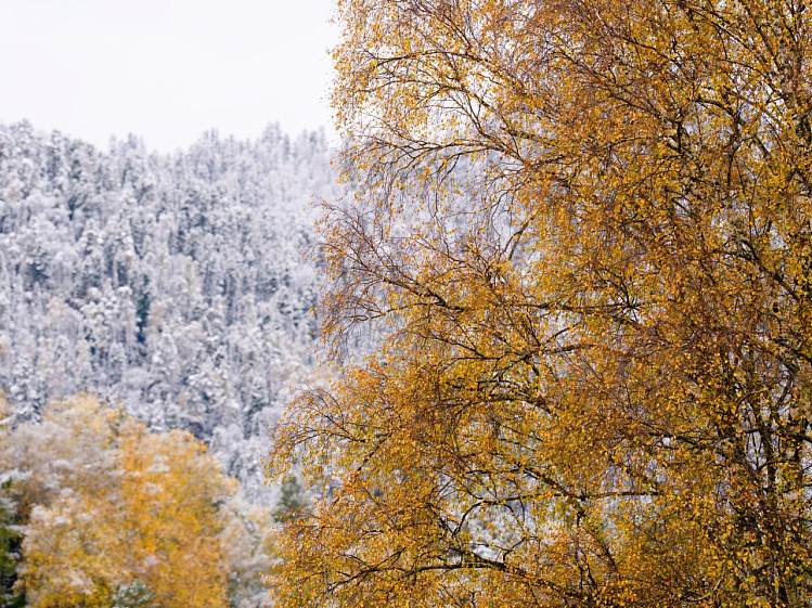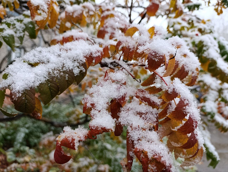 Кстати, 6 октября Барнаул тоже стал бело-зелёным. В краевой столице выпал мокрый снег, превративший деревья, траву и припаркованные машины в заснеженные объекты.