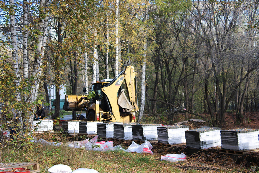 Теперь подрядчик готовится к высадке деревьев. На объекте частично разбили участки, а места, где вскоре появятся молодые саженцы, разметили кольями. Всего там посадят 190 деревьев и порядка 2,5 тысячи кустарников.