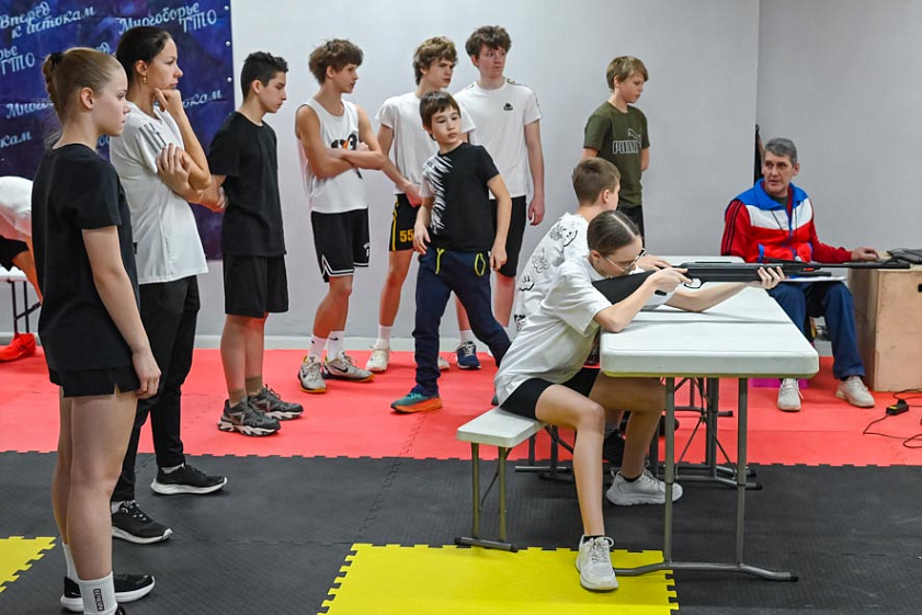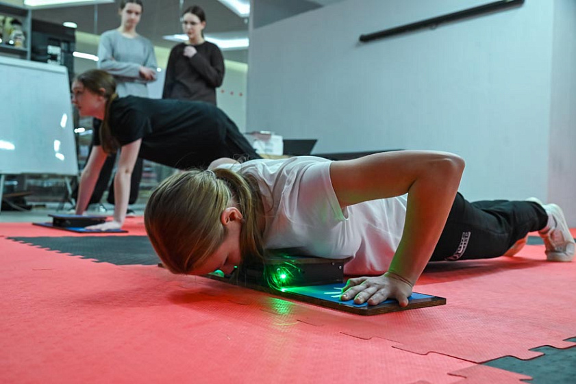 Сегодня ребята боролись за звание лучших в спортивном зале «Империя атлетов». Они стреляли из электронного оружия, прыгали с места, подтягивались и отжимались, а также поднимали туловище из положения лёжа на спине и проверяли свою гибкость.