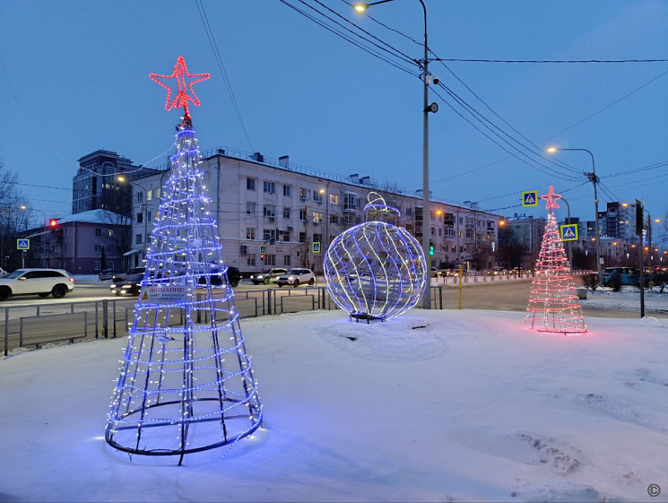 На улице Советской расположилась световая конструкция «Новогодние часы», а на пересечении проспекта Калинина и улицы Кулагина установили восемь светодиодных бабочек. По-новому оформили фонтан «Космос» и выполнили подсветку деревьев на Обском бульваре.