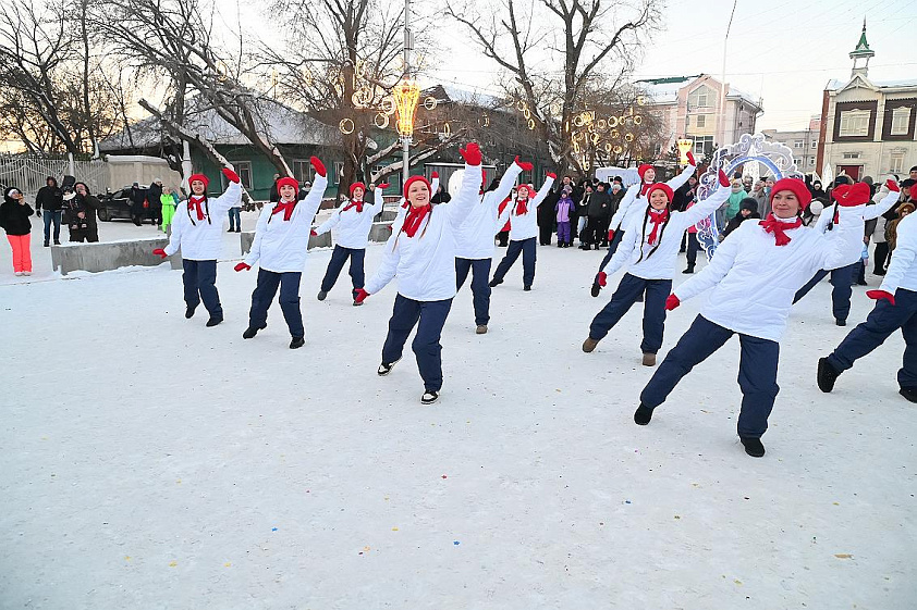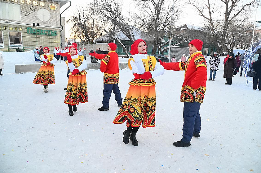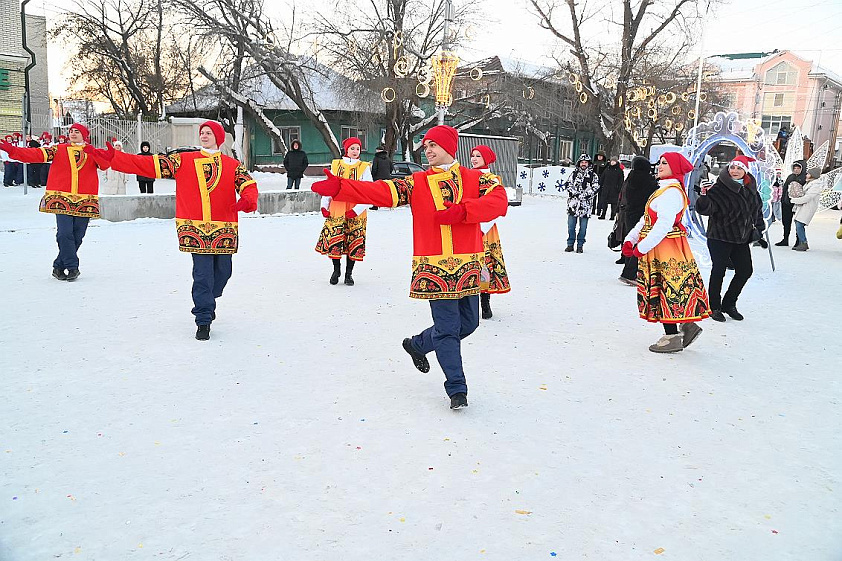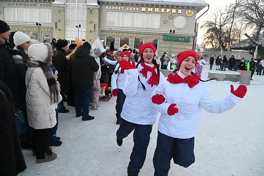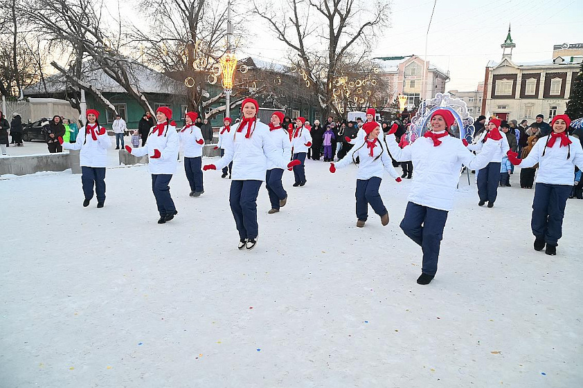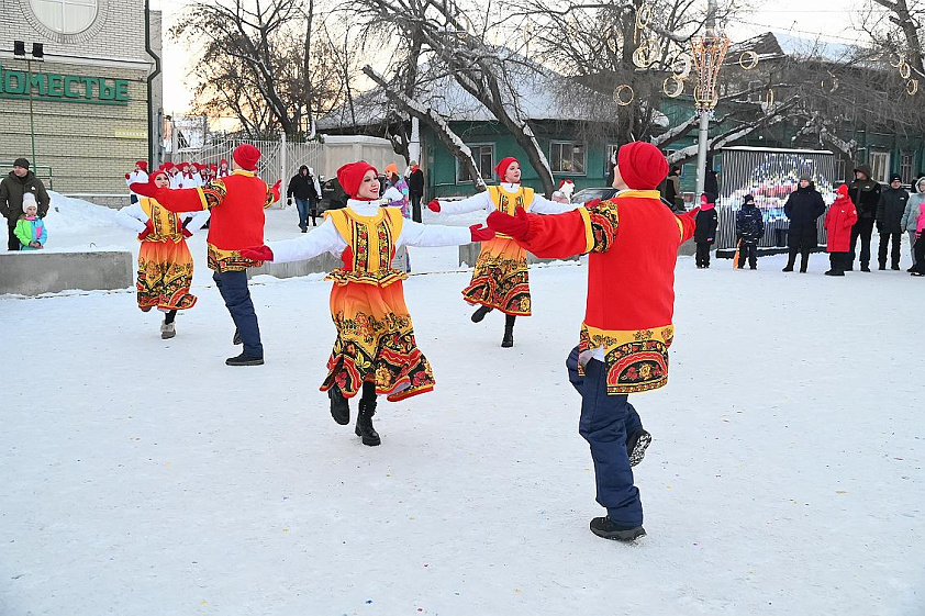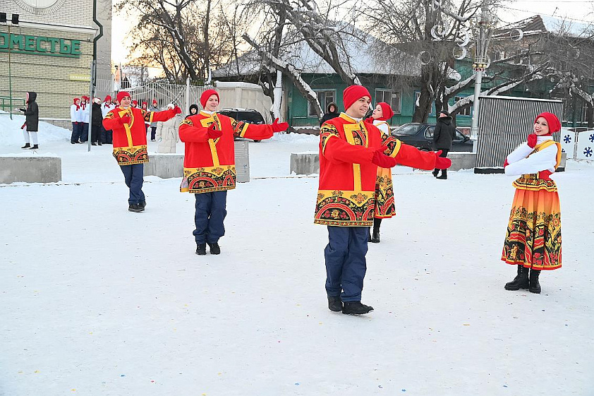 — Сегодня на протяжении трёх часов барнаульцев будут радовать своими выступлениями заслуженный коллектив самодеятельного художественного творчества Алтайского края театр танца «Иван да Марья», народный театр танца имени Розы Фибер, хореографическая группа хора «Сибиряночка», вокально-эстрадная студия «Доминанта», театральная студия «Главные роли» и другие коллективы ДК «Город». Всего будет задействовано 120 участников, будет исполнено 30 номеров, предусмотрена развлекательная программа, — поделился директор Дворца культуры города Барнаула Роман Ильин. — Мы специально сшили тёплые костюмы для выступлений на улице, для артистов предусмотрены тёплые гримерки и раздевалки. В другие дни горожан будут радовать творческие коллективы других Домов культуры краевой столицы.
