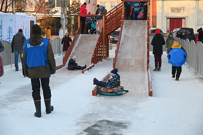 — Сегодня, например, первые посетители пришли ближе к 11 утра, — поделился боец ССО «Витязь» Евгений Костромин. — Возраст от шести до 10 лет, в основном, все самостоятельные, без родителей катаются. Слёз у ребятни не бывает, даже если с ледянки соскальзывают, а вот без очереди пролезть попытки были, но для этого мы и нужны, чтобы порядок был и даже намёк на травмы исключался. Наша помощь практически не требуется, если только ребёнок сильно уж укутан, руку подаём, чтобы поднялся побыстрее.