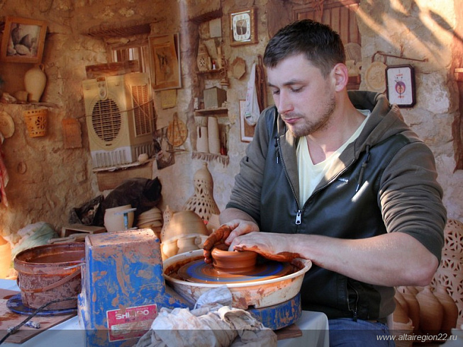 Родом Михаил Бывших из Саратовской области. Затем жил в Москве, где учился в знаменитой «Плехановке», а потом решил отправиться в Сибирь, которая его всегда манила какой-то природной силой. Поначалу поселился в одном из районов Омской области, где познакомился со знаменитым сибирским мастером Андреем Задерия, после перебрался на Алтай, в село Куяча Алтайского района, а потом — в Барнаул. Кстати, в наш город он приехал в качестве лучшего гончара Сибири. Это звание ему было присвоено по итогам знаменитого международного фестиваля «Праздник топора», который проходил в Томске в 2018 году. Там он занял первое место в конкурсе «Глиняный сказ», где поставил технический рекорд: сделал из двух килограммов глины за 20 минут 178 кувшинчиков высотой 3 см.
