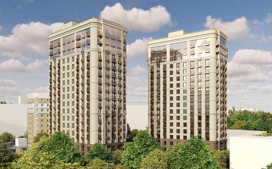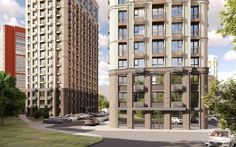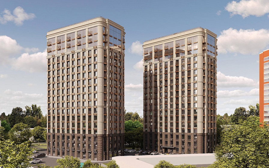 Отделка фасадов домов будет из керамического кирпича двух оттенков — коричневого и бежевого, с использованием композитных элементов. Ограждения балконов, а также корзины для кондиционеров будут металлические, с оттенком бронзы. Переплёты окон графитового цвета. Пластика фасада — кирпичная кладка, использование композитных элементов и металлических ограждений — оригинальная, создающая нерядовую застройку. Верхние этажи акцентные, с большим объёмом витражного остекления.