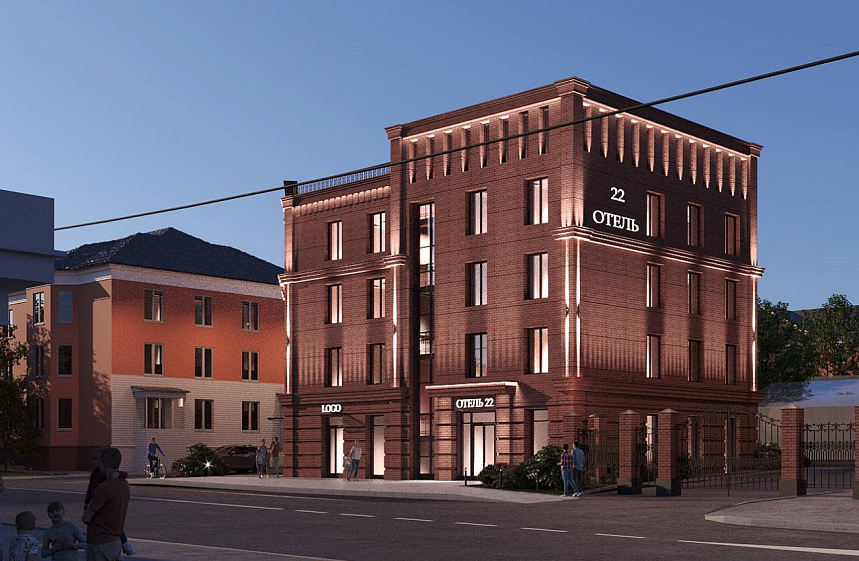 Здание пятиэтажного отеля Г-образной формы с подвалом и номерным фондом на 30 комнат и 60 мест для компании «Отель 22» разработала проектная мастерская «АльфА–ПроекТ». В октябре проект был отправлен на доработку с множеством замечаний. Повторная презентация также оказалась неубедительной, и проект был отправлен теперь уже на переработку.
