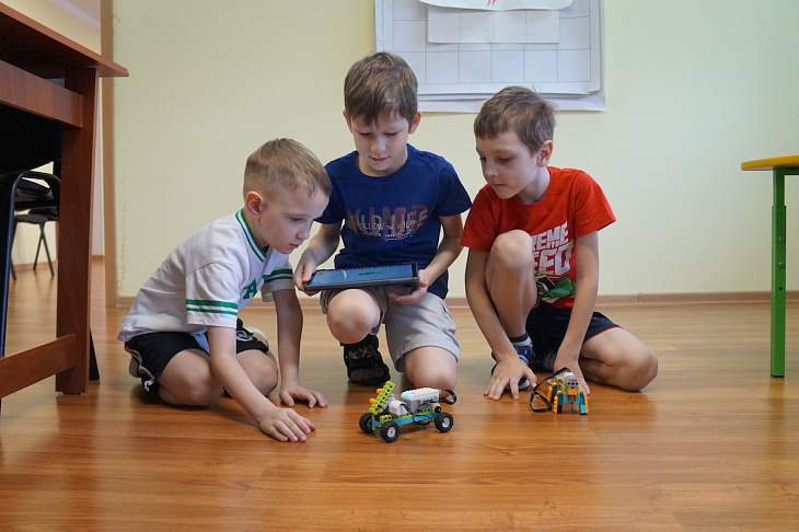 — Любую штуку можем в привод привести, чтобы она двигалась. По общим схемам мы всё, что можно, уже не раз делали. Теперь интересно придумать что-то своё. Главное, чтобы машина в итоге поехала. Эта коробочка — «смарт хаб» — подключается к планшету, остается только установить моторчик и подсоединить его к колесам, чтобы они двигались. И всё — машина поедет, — поясняет будущий инженер. Об этой профессии семилетка давно и серьёзно подумывает.