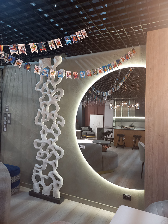 — Часто изделия продаются, на смену им привозят новые, — говорит — Мастеру ведь главное показать, как его творение будет смотреться вживую. В этом и отличие нашего проекта от других, в том, что мы работаем офлайн. Мастера сами приходят к нам, некоторых нахожу на ярмарках и выставках. Так, на третьем креативном форуме увидела столик из эпоксидной смолы и пригласила автора в пространство. У нас можно увидеть оригинальные лампы ручной работы, зеркала в рамах, декор из макраме. Важно такие дизайнерские элементы грамотно встраивать в интерьер, часто именно они являются отправной точкой для создания пространства вокруг, наделяют его характером, дарят душу.