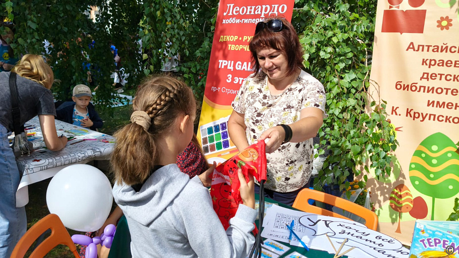 В Ленинском районе на площади Мира прошла праздничная программа «Город, где сбываются мечты!». Для жителей и гостей района организовали выставку тематических композиций «Живет на свете красота» и литературную площадку от Общественной Алтайской краевой писательской организации «Союз писателей России».