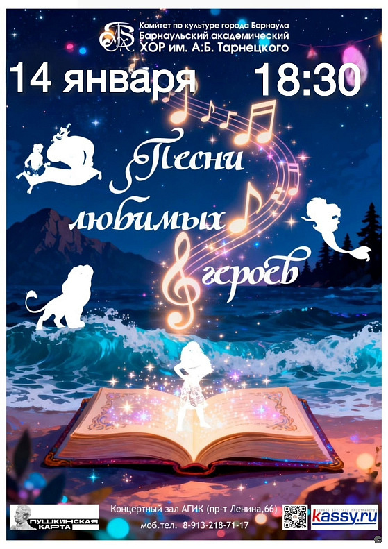 14 января в концертном зале АГИК состоится концерт «Песни любимых героев» в исполнении Барнаульского академического хора им. А.Б. Тарнецкого, на котором зрители погрузятся в мир волшебных мелодий из известных мультфильмов.