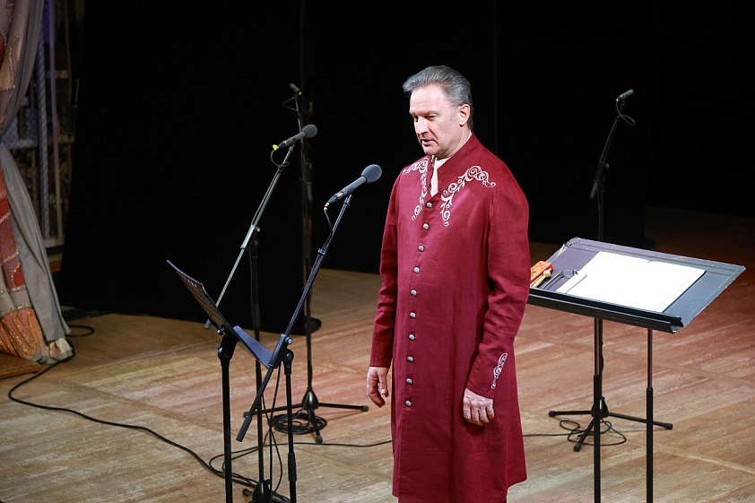 Так как первая часть концерта была посвящена рождественским песнопениям, то со зрителями в зале чтецы — Игорь Краснощеков и Георгий Сафонов — общались так, словно зритель находился не в филармонии, а в храме. Говорили о чуде Рождества, о значимости и величии появления Богомладенца, о том, что именно Рождество является главным семейным праздником, а не Новый год.