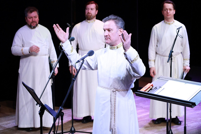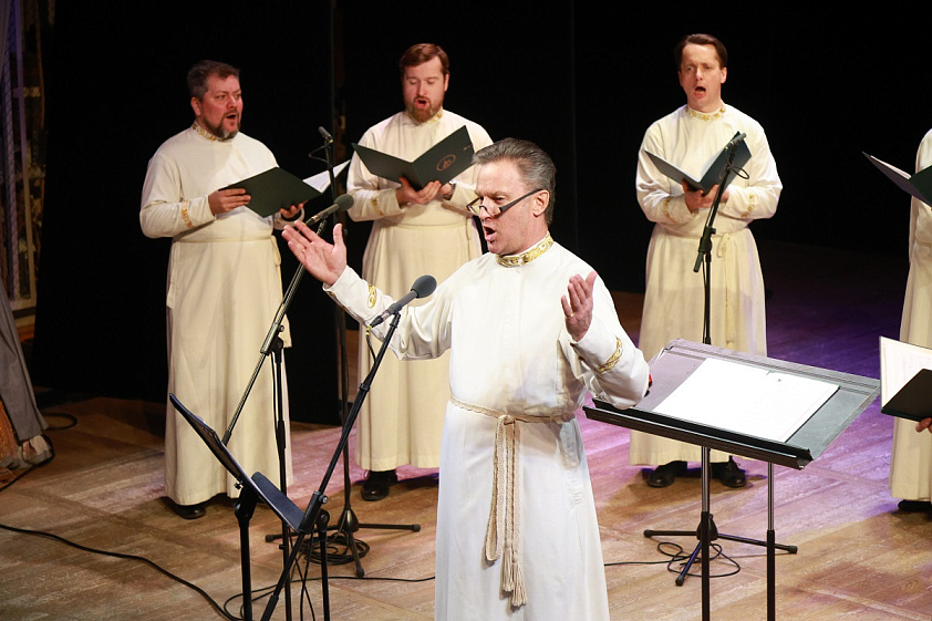 — Как показала практика, когда мы исполняем рождественские песнопения, многим так или иначе они знакомы, и зрители просто получают удовольствие. А когда они слышат что-то новое, незнакомое, они таким образом углубляют свои знания, пытаются услышать, о чём мы поём, и понять, проникнуться. И чаще всего это касается именно духовных стихов, которые мы исполняем. Это очень интересный жанр, где народ вложил свою душу и в тексты, и в музыку. Притом музыка иногда бывает очень банальная, там, будем говорить, 8–10 нот, на которые расписаны до 150 куплетов, например, как были в былинных напевах о русских богатырях. Сейчас появились современные духовные стихи, которые уже сочиняют наши коллеги, современные авторы. И мы с удовольствием исполняем эти произведения. Люди очень чутко реагируют на такое лирическое, будем говорить, неспешное звучание. То, что, может быть, где-то на Западе называется релаксом, у нас это как раз такое душевное, очень глубокое пение, которое проникает в душу.