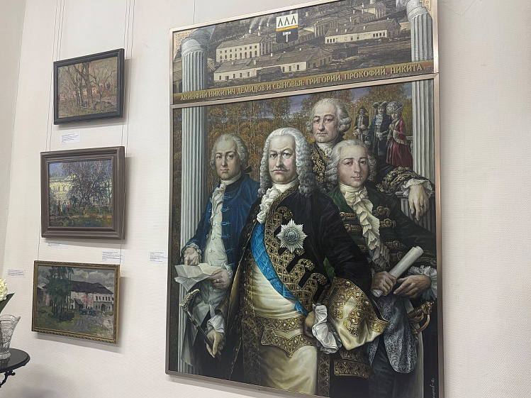 В экспозиции представлено 47 произведений живописи, графики, скульптуры и декоративно-прикладного искусства из коллекции музея, мастерских художников и музея «Мир времени». Центральной работой экспозиции является живописное полотно Александра Емельянова «Акинфий Никитич Демидов и сыновья: Григорий, Прокофий, Никита» (2018 г., собственность семьи художника). В картине запечатлены не просто лица — она оживляет целую эпоху, представляя людей, чьи жизни были тесно переплетены с историей Российского государства.
