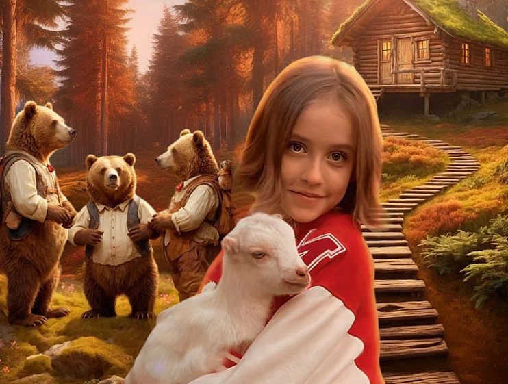 Картина переосмысливает мотивы народной сказки «Три медведя» в обработке Льва Толстого и других русских сказок.