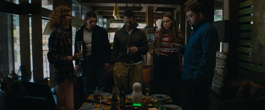 Группа бывших однокурсников арендует загородный дом, чтобы вспомнить молодость. В современном шале есть всё для комфорта, включая умную колонку «Алёну». Поначалу устройство кажется безобидным: регулирует свет, включает музыку, развлекает головоломками. Но вскоре выясняется: гаджет знает о гостях слишком много. «Алёна» предлагает сыграть в квест «Найди убийцу», связанный со смертью их подруги, погибшей при загадочных обстоятельствах менее года назад. Каждая подсказка от помощницы вскрывает старые обиды и ложь. Участники понимают: чтобы выжить, нужно первыми раскрыть тайну, раскрывает сюжет канал «За кадром с попкорном».