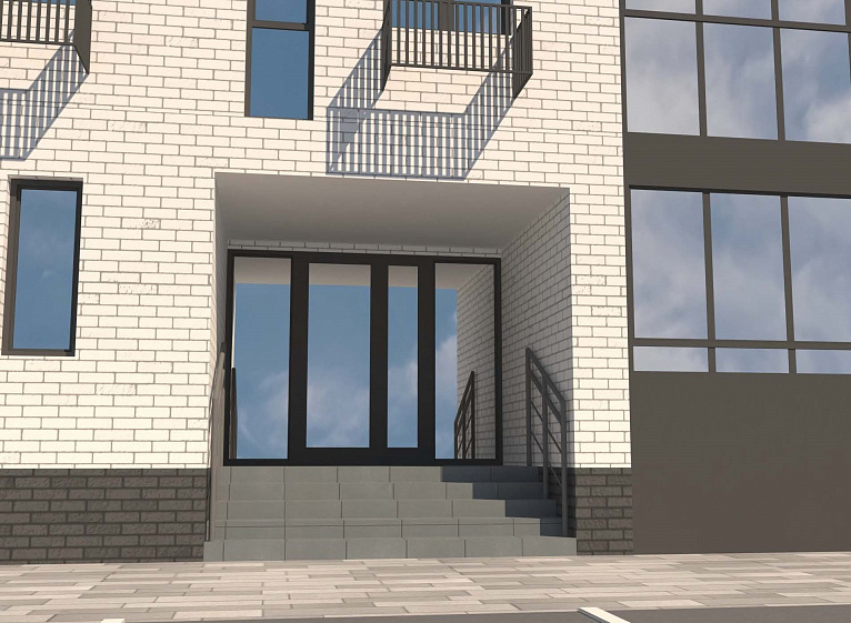 Вход в подъезд — с улицы Чернышевского. В подвале будут размещаться технические помещения и кладовые для жильцов. На уровень подвала будет спускаться лифт.