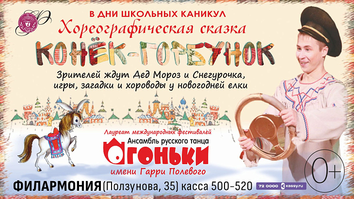 Увидеть обновлённую постановку хореографического спектакля «Конёк-горбунок» можно будет 31 декабря, а также 3, 4, 5, 6 и 7 января на сцене краевой филармонии (ул. Ползунова, 35).