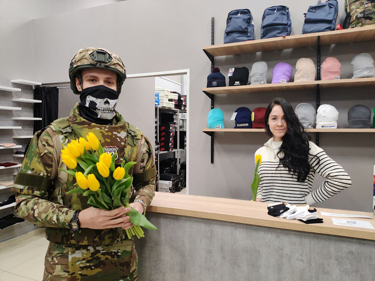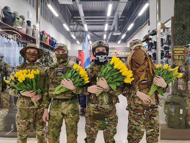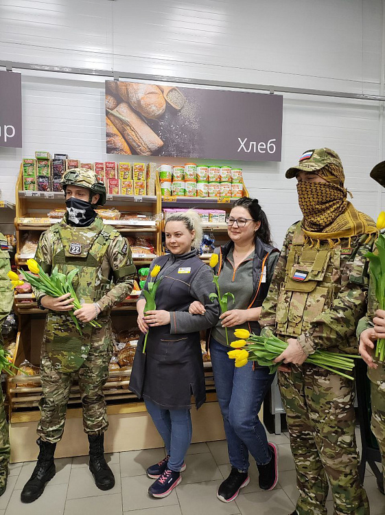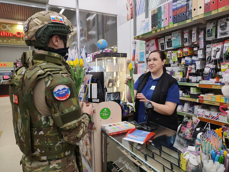 Поздравили с Международным женским днём люди в военной форме представительниц прекрасного пола вчера, 8 марта, в барнаульском торговом центре «Лето». Все участницы акции получили заряд положительных эмоций и хорошее настроение.