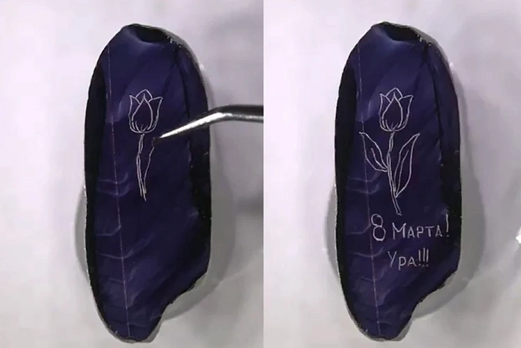 Художник добавил к цветку надпись: «С 8 Марта! Ура!». Видео с созданием миниатюрной картины он опубликовал на своей странице в соцсети.
