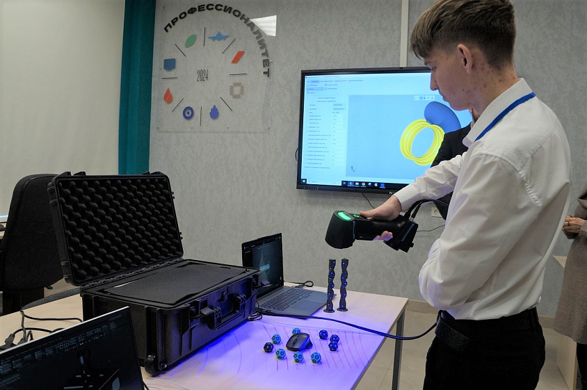Перед учеником 129-го лицея Степаном Тимченко расположилось интересное устройство — 3D-сканер, который позволяет за считанные минуты получить 3D-модель любой технически сложной детали. При этом сканировать можно от небольшого ювелирного изделия до детали размером с КамАЗ.