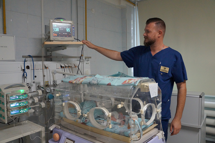 Отделение реанимации интенсивной терапии новорожденных детей № 2 Алтайского краевого клинического центра охраны материнства и детства уникальное для региона. Сюда поступают малыши в возрасте до трех месяцев, заболевшие уже после выписки из роддома, которым требуется реанимация и интенсивная терапия. Один из таких крошечных пациентов сейчас лежит в специальном кювезе — выхаживающей колыбельке, накрытой специальным, поглощающим звук чехлом. Дышать маленькому пациенту помогает новое уникальное оборудование.