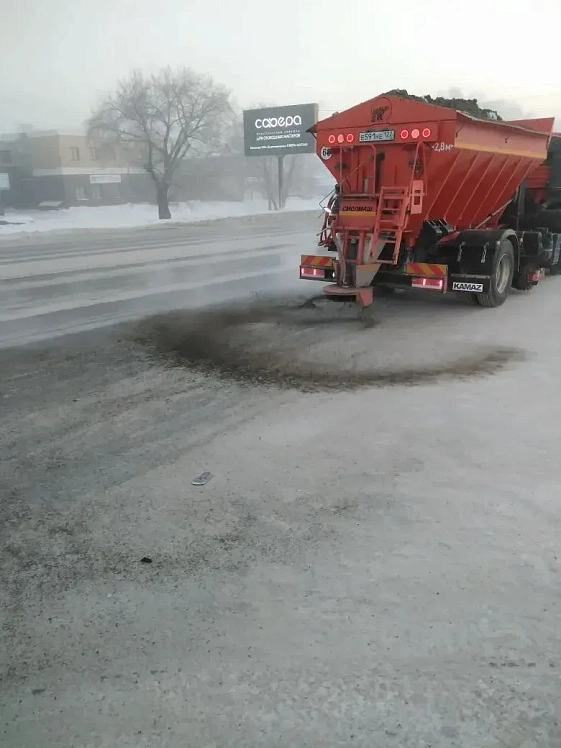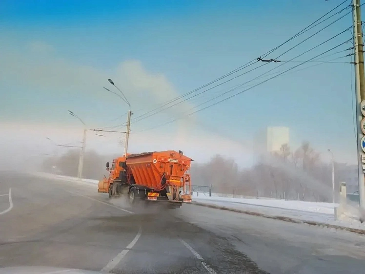 Дорожная служба продолжает работу по содержанию улиц в Барнауле, несмотря на аномально низкие температуры. Чтобы обеспечить безопасность на дорогах, наиболее опасные участки посыпают специальными средствами.
