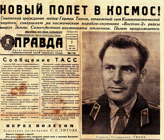 В Государственном архиве Алтайского края хранится пожелтевший от времени выпуск газеты «Правда» от 7 августа 1961 года. Главная новость: «Новый полёт в космос!»
