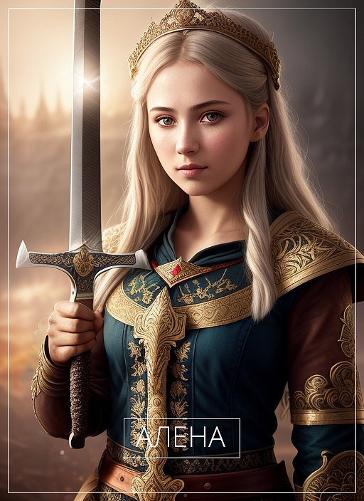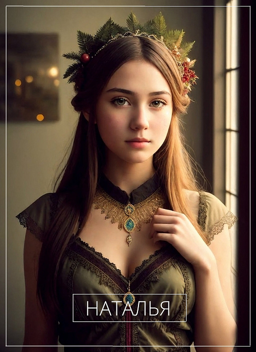Так, например, Наталья означает «рождественская» или «рождённая в Рождество», потому голову девушки с этим именем украшают еловые веточки. Юлия в переводе с древнегреческого «кудрявая», «пушистая» — именно эту изюминку отразила нейросеть. Символом имени Алёна является меч и огонь — они фигурируют на изображении с девушкой.