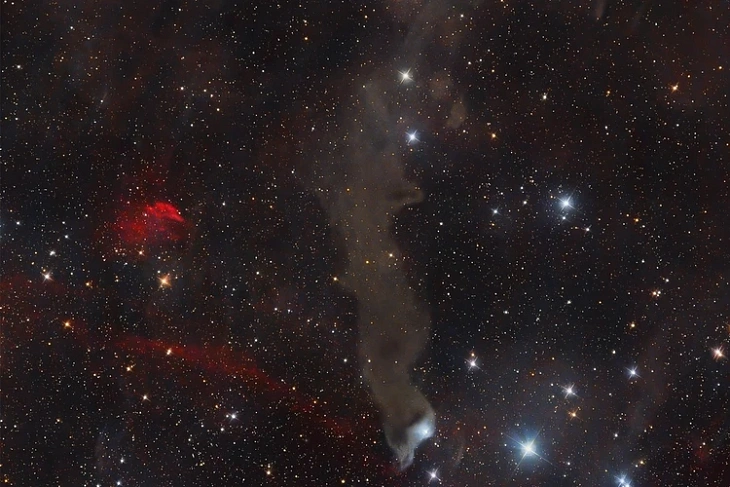 Туманность Волчья пещера находится на расстоянии 1400 световых лет от нас в северной части Млечного Пути, в созвездии Цефея. Астрономы сообщают, что в подобных пылевых туманностях могут рождаться новые звёзды.
