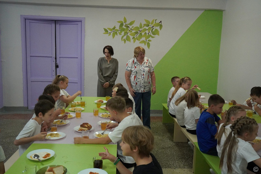 Директор школы Ирина Сажаева сообщила, что в учебном заведении обучается более 1,5 тысячи детей. Около 600 учеников начальной школы ежедневно получают бесплатные горячие завтраки и обеды.