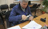 Сергей Иванович показывает стоп-кадр на видеокамере, на котором запечатлена птица в кормушке рядом с крыльцом АКДЭЦ. На её лапах — четыре кольца, значит, она уже прошла через руки Гашкова. По журналу орнитолог находит номер 2242 — попала птица к нему вчера, значит, уже сутки синица находится в окрестностях АКДЭЦ, далеко не улетает.