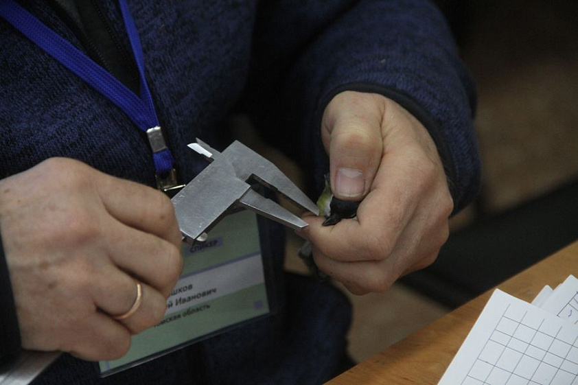 Затем Гашков изучает оперение, замеряет клюв, некоторые перья штангенциркулем, взвешивает пернатого.
