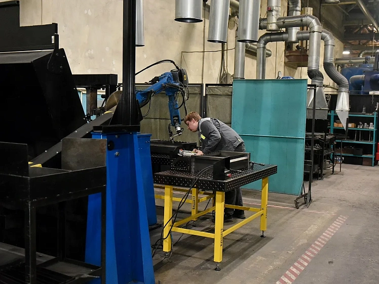 — На сегодняшний день три производственных процесса на заводе полностью роботизированы — лазерный, гибочный и сварочный. Четвёртый сварочный находится на этапе подготовки внедрения в производство, — рассказал Иван Аксенчик, заместитель директора по производству. — Первыми внедрили роботов на сварочном и гибочном участках, и они показали эффективность в плане увеличения производительности, у них в разы более высокая стабильность и качество сварочного шва. К примеру, робот на участке сверловки заменяет трёх сотрудников, которые раньше здесь работали. Сейчас эту операцию выполняет робот с одним оператором, он подключается при необходимости. Высвободившихся специалистов задействовали на других участках.